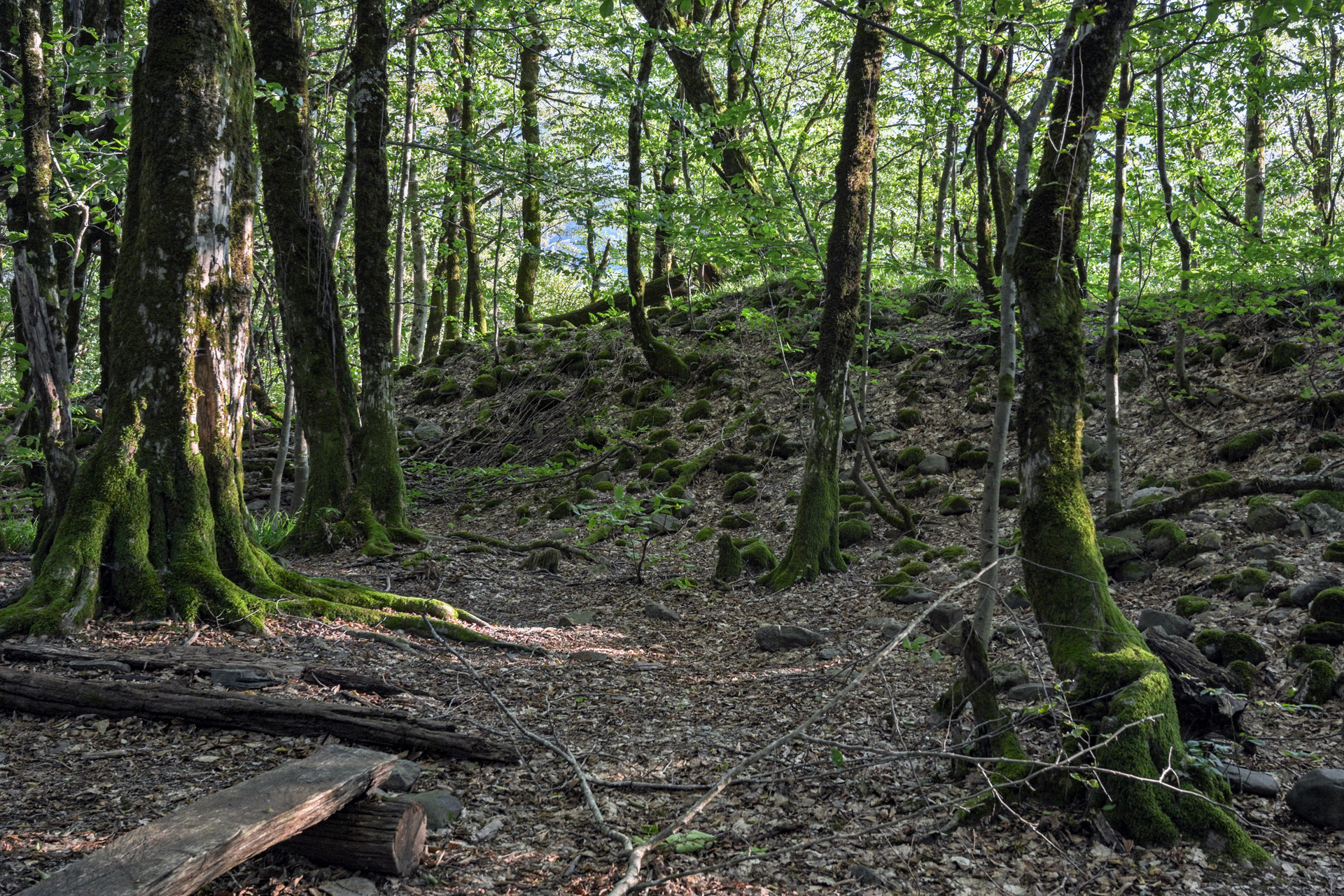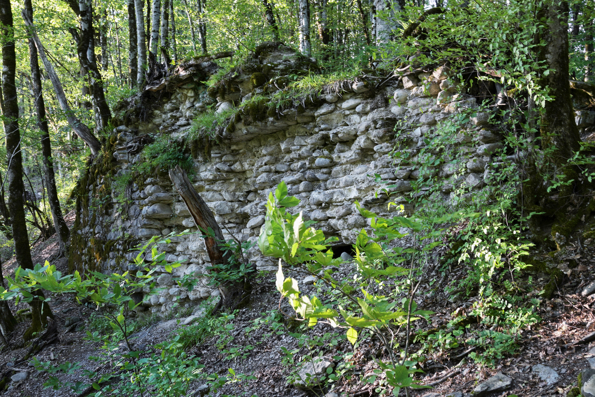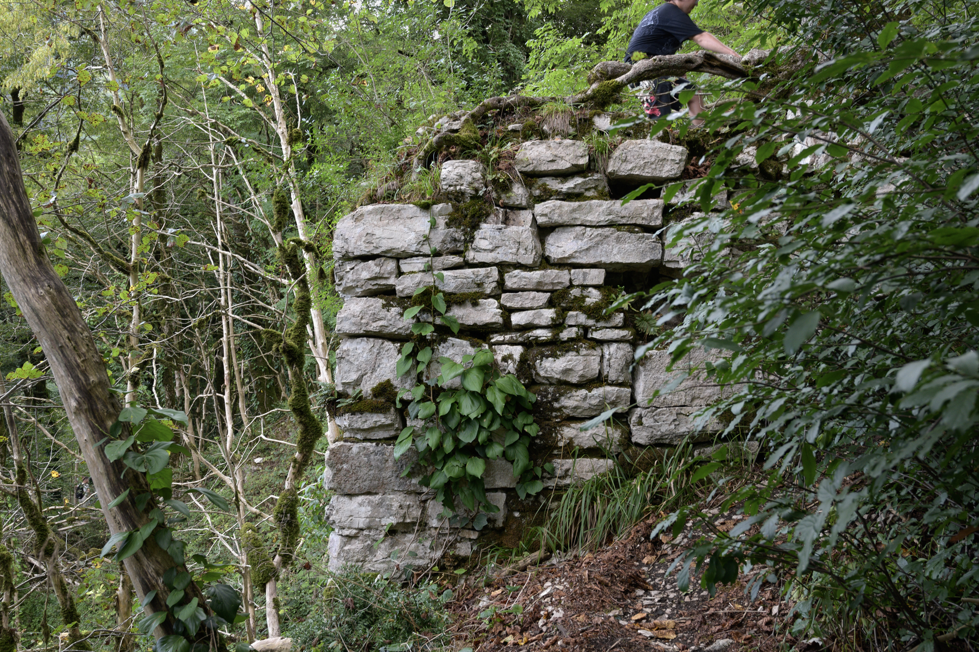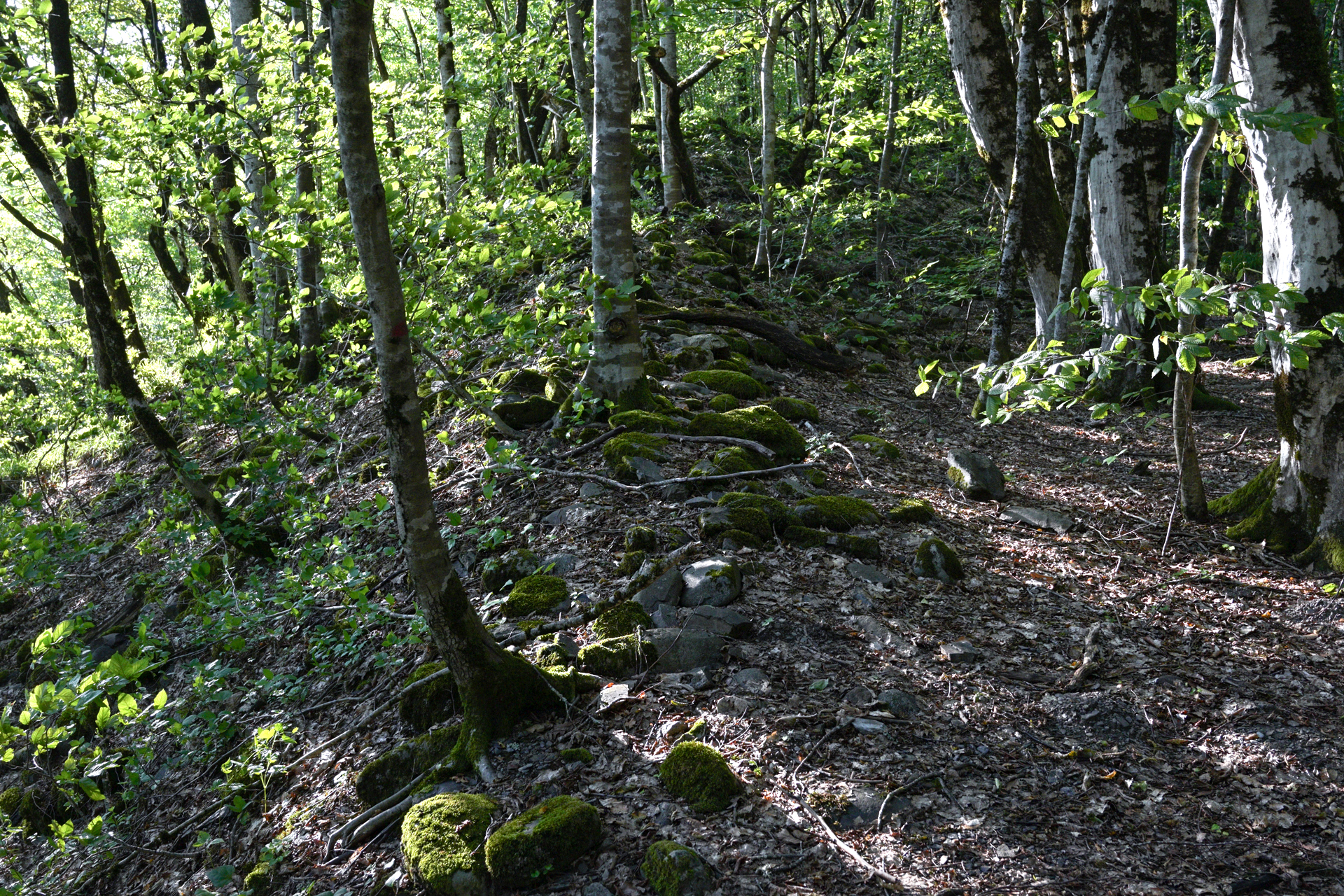 Она прослеживается примерно на 350 метров, но с этой стороны под деревьями было совсем темно, поэтому я не стал далеко ходить. Где-то там есть окопы времен Великой Отечественной. Согласно Ю. Н. Воронову: "Здесь на протяжении 160 м было сооружено три башнеобразных полукруглых и треугольных в плане контрфорса, в задачу которых входило поддержать стену над обрывом. Далее к востоку северная стена постепенно теряет свою мощность и местами вообще исчезает, что обусловлено в первую очередь оползнями в сторону ущелья реки Ачипсе" | ||||