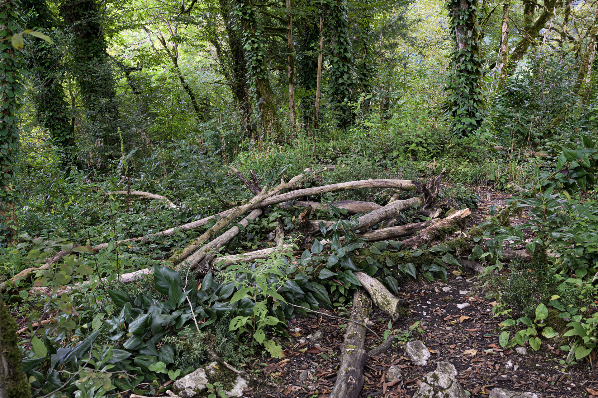 но большая часть тропы выглядела примерно так, как на фотографиях ниже. Временами мне казалось, что среди деревьев показалась крепость, но всякий раз это были либо упавшие деревья, либо скала | ||||