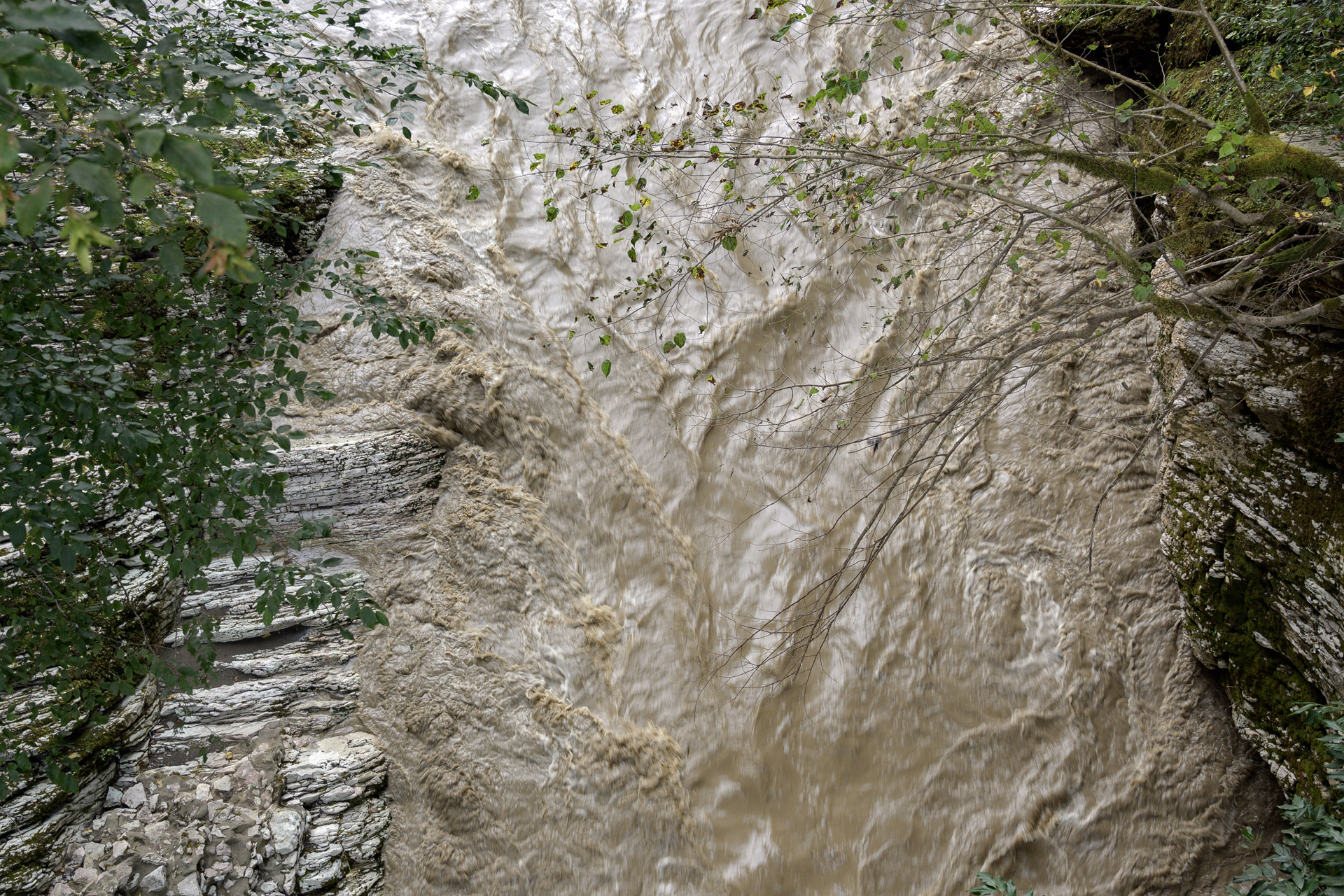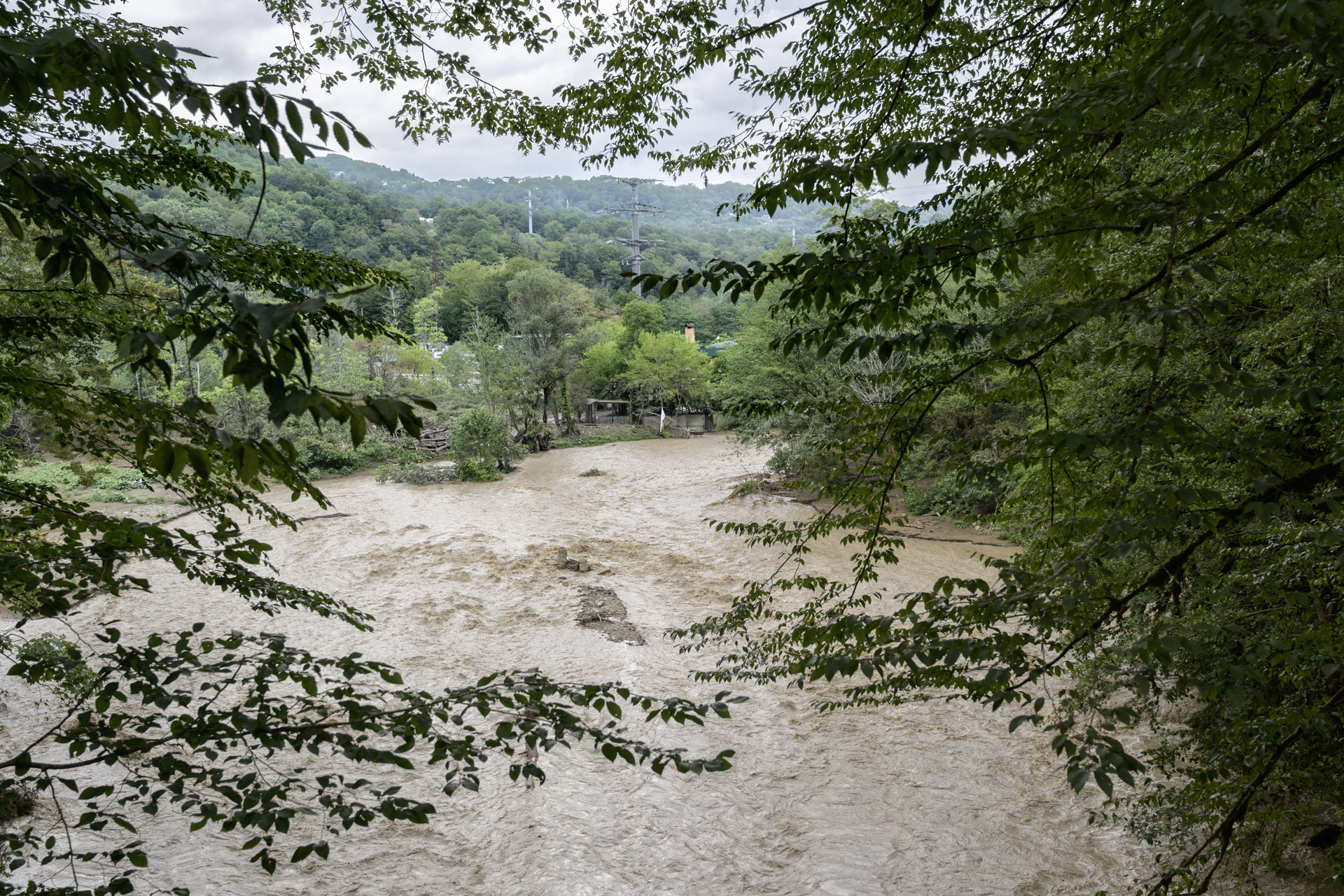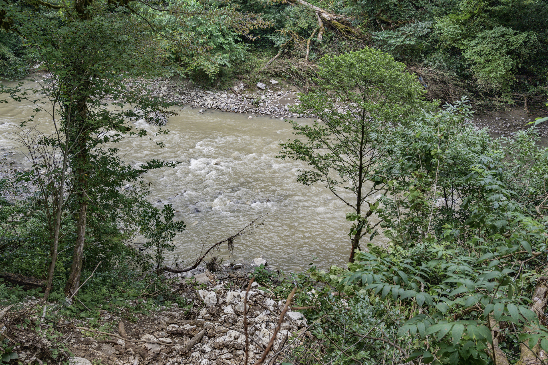 Из-за дождей выше в горах река поднялась, но обычно, как я потом понял по фотографиям других туристов, вода в реке чистая и прозрачная. В это место приходят и приезжают посидеть на берегу и поплавать. А сель сходил раньше и оставил после себя кучи всего того, что нашел на берегах | ||||
