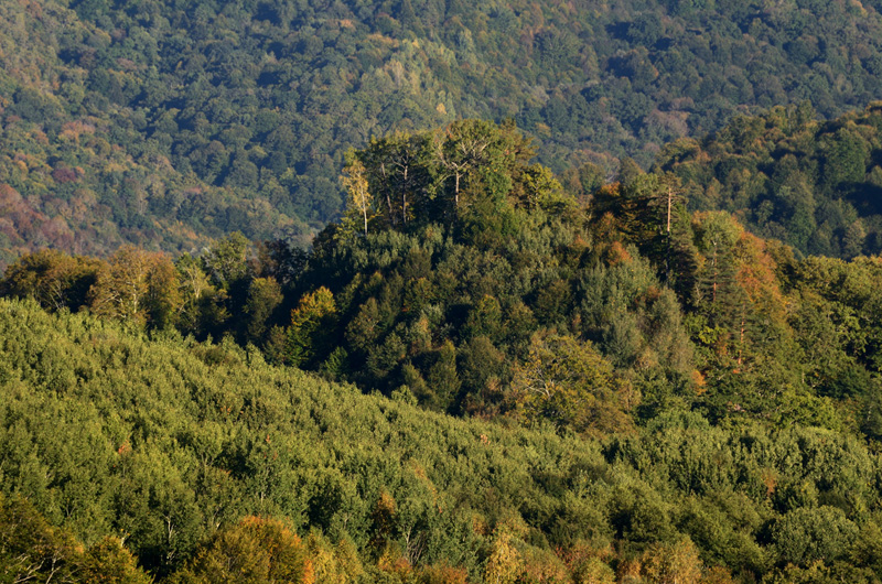 | Люди современного типа появились в этих краях намного позже и однажды, спустя тысячи лет, их потомки или люди, пришедшие позже из других мест, научились строить из камня. Неподалеку находятся Цербелевы поляны. Вокруг в зарослях много частично или полностью закопанных в землю и сильно разрушенных дольменов |