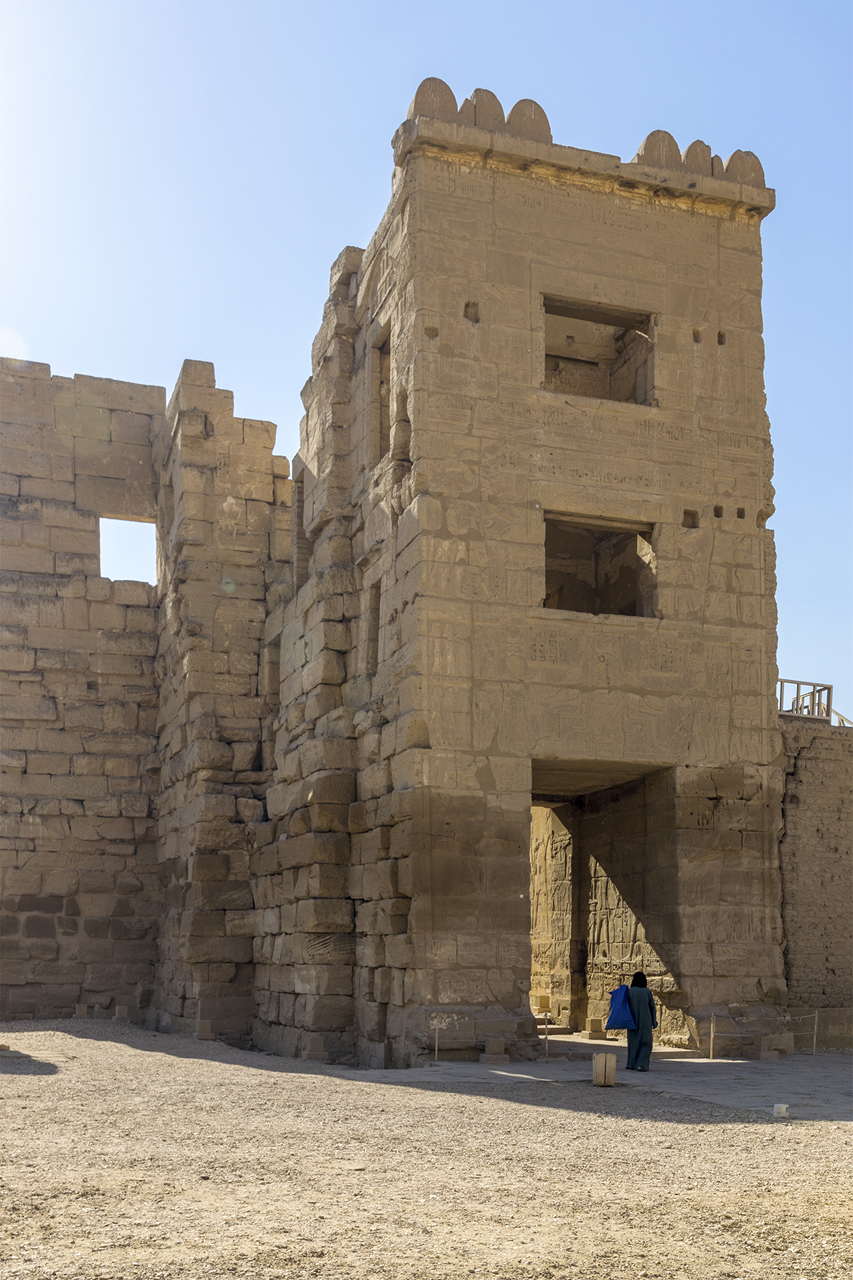 Вид на пилон Птолемеев или первый пилон храма 18 династии со стороны храма Рамсеса III | ||||||