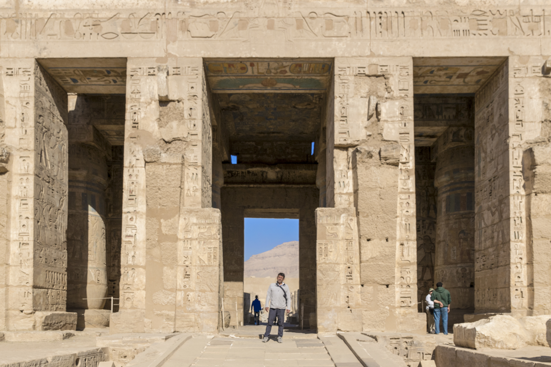 На последних двух фотографиях я и Шенода у входа в гипостильный зал, хотя получилось так себе. А это сам гипостильный зал. Так зал выглядит сейчас | ||||||