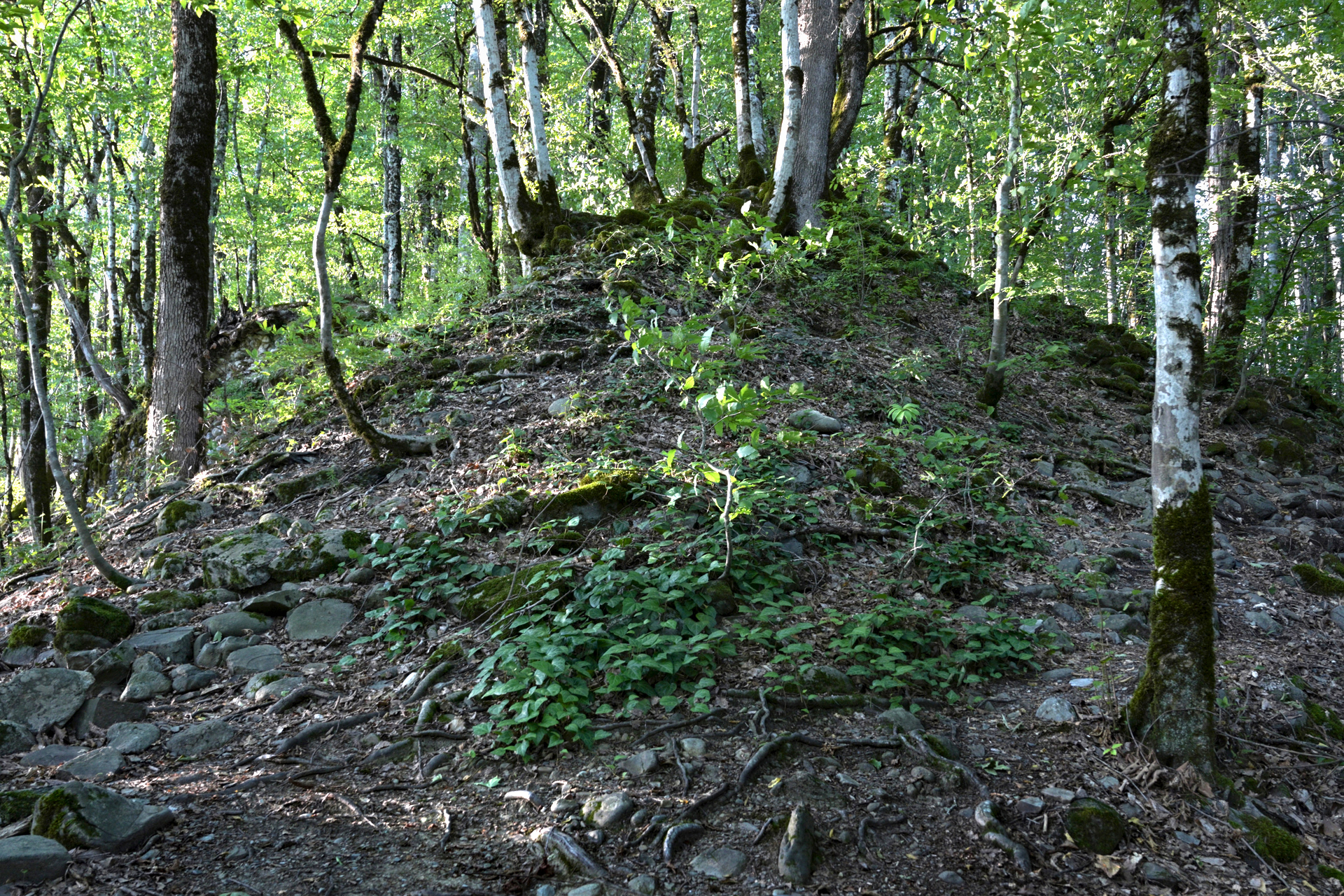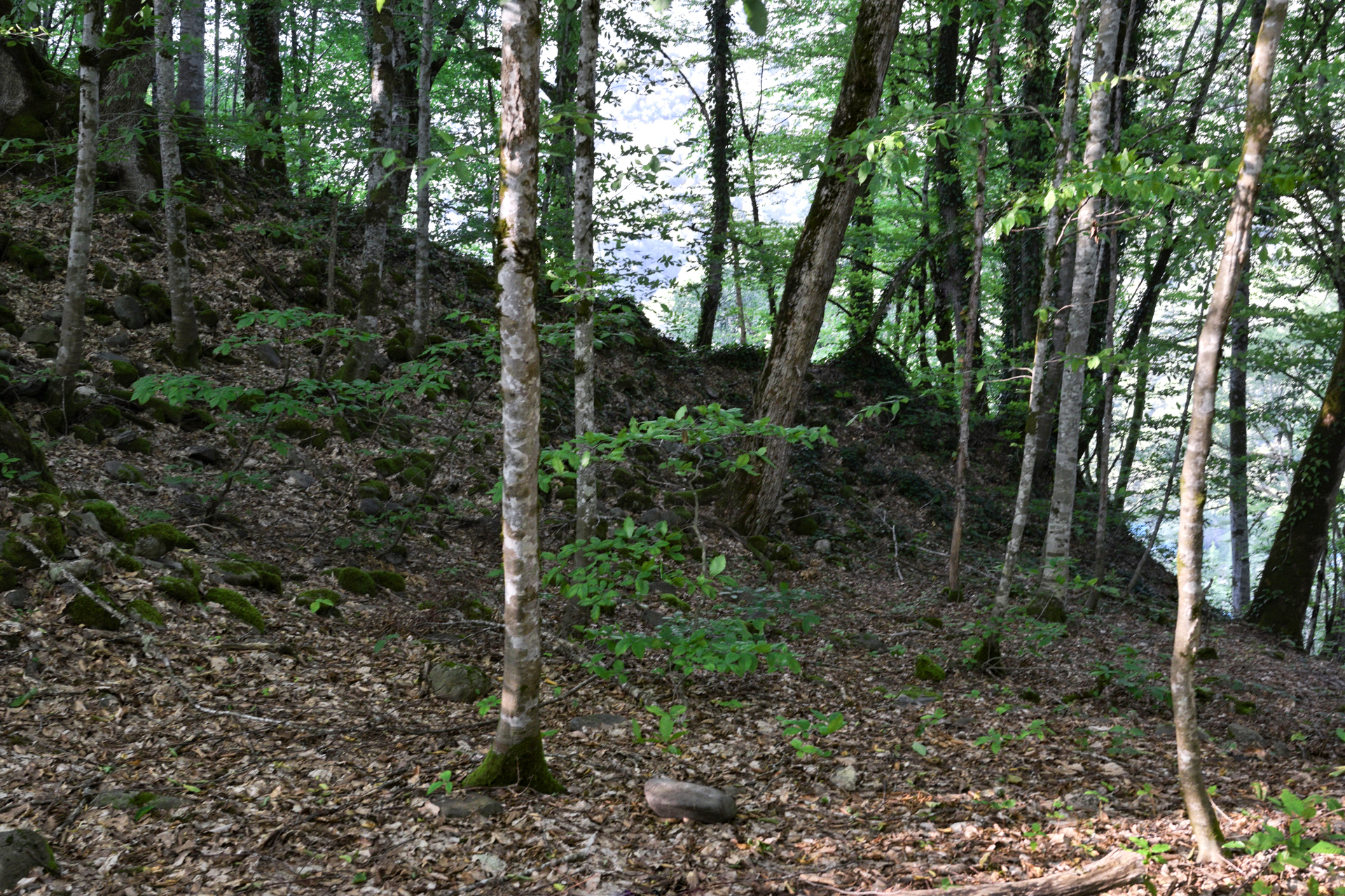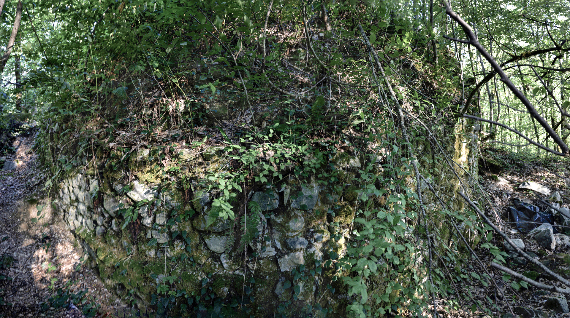 Она прослеживается примерно на 350 метров, но с этой стороны под деревьями было совсем темно, поэтому я не стал далеко ходить. Где-то там есть окопы времен Великой Отечественной. Согласно Ю. Н. Воронову: "Здесь на протяжении 160 м было сооружено три башнеобразных полукруглых и треугольных в плане контрфорса, в задачу которых входило поддержать стену над обрывом. Далее к востоку северная стена постепенно теряет свою мощность и местами вообще исчезает, что обусловлено в первую очередь оползнями в сторону ущелья реки Ачипсе" | ||||