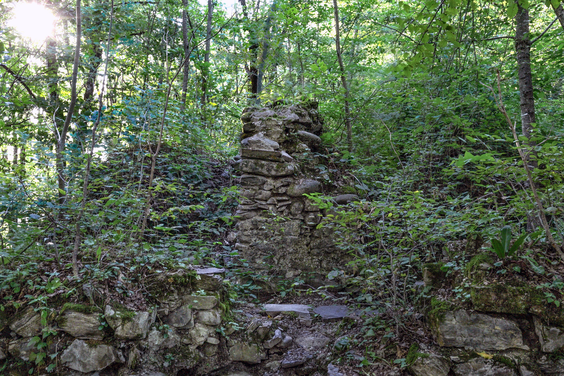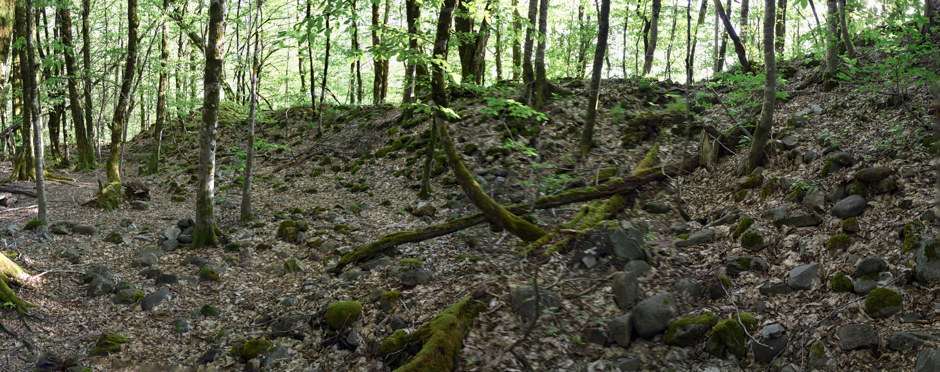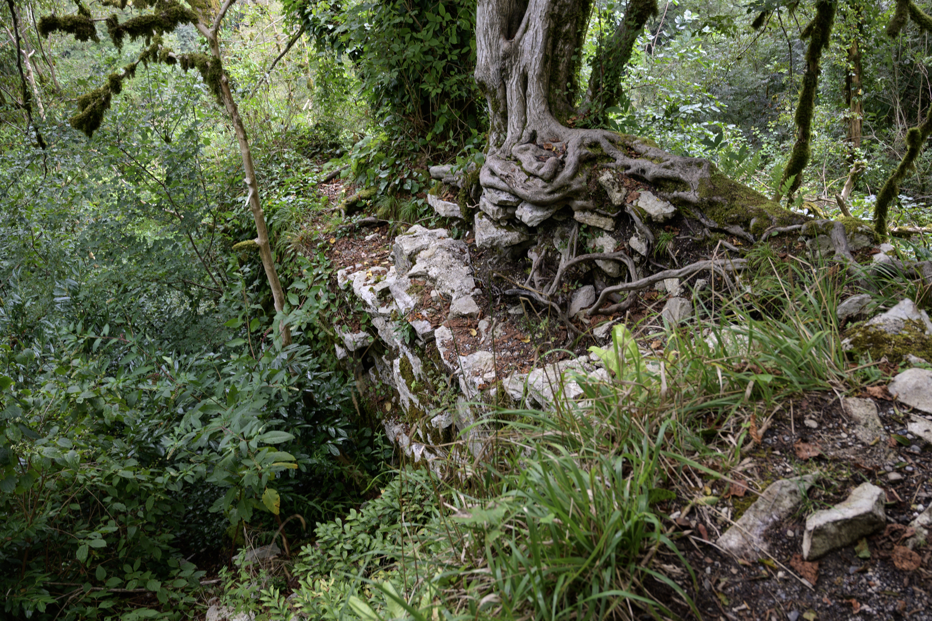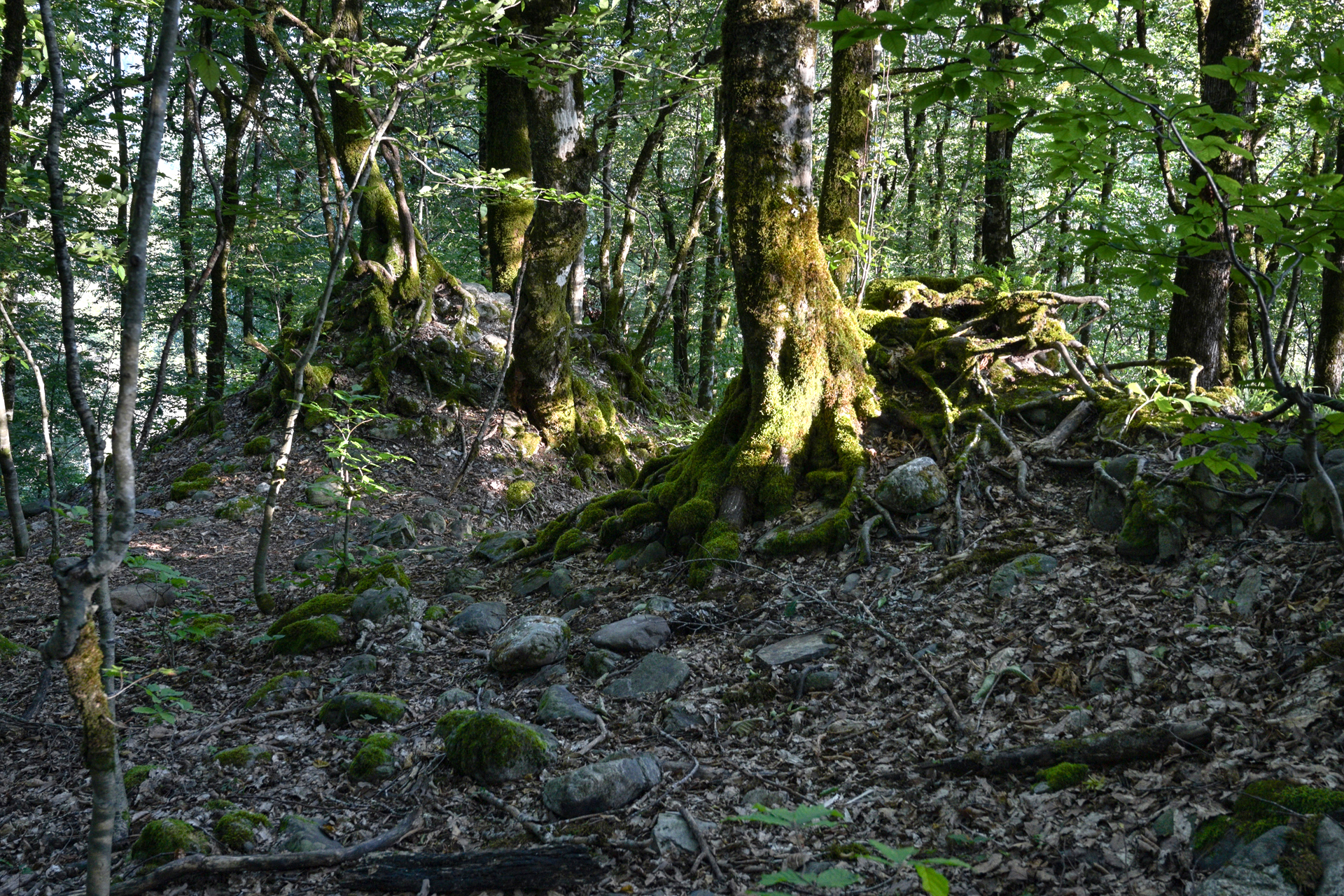 Она прослеживается примерно на 350 метров, но с этой стороны под деревьями было совсем темно, поэтому я не стал далеко ходить. Где-то там есть окопы времен Великой Отечественной. Согласно Ю. Н. Воронову: "Здесь на протяжении 160 м было сооружено три башнеобразных полукруглых и треугольных в плане контрфорса, в задачу которых входило поддержать стену над обрывом. Далее к востоку северная стена постепенно теряет свою мощность и местами вообще исчезает, что обусловлено в первую очередь оползнями в сторону ущелья реки Ачипсе" | ||||