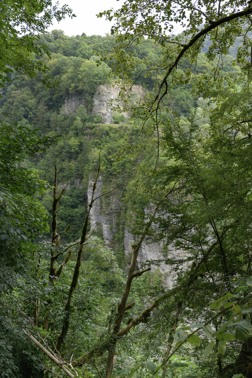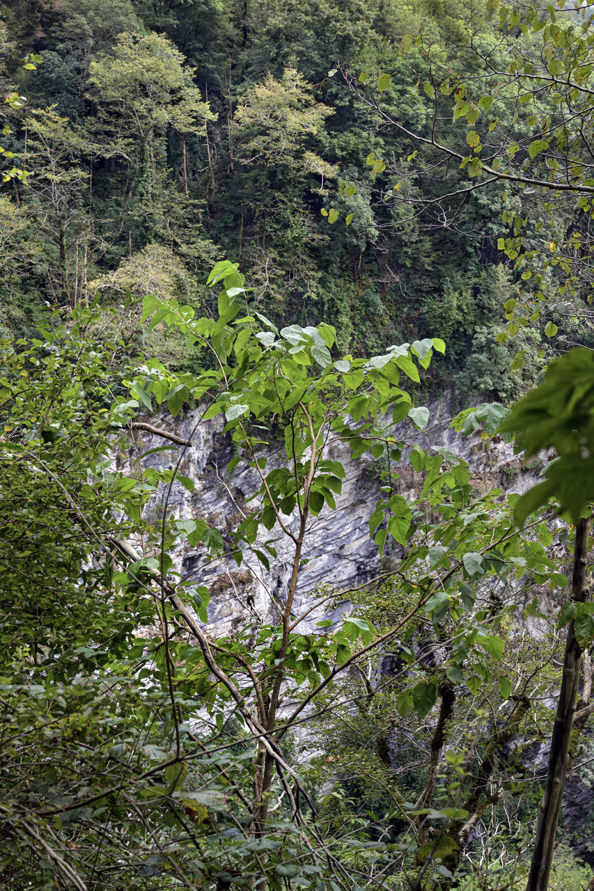Между деревьями временами было видно ущелье и скалы высотой в сотни метров | ||||