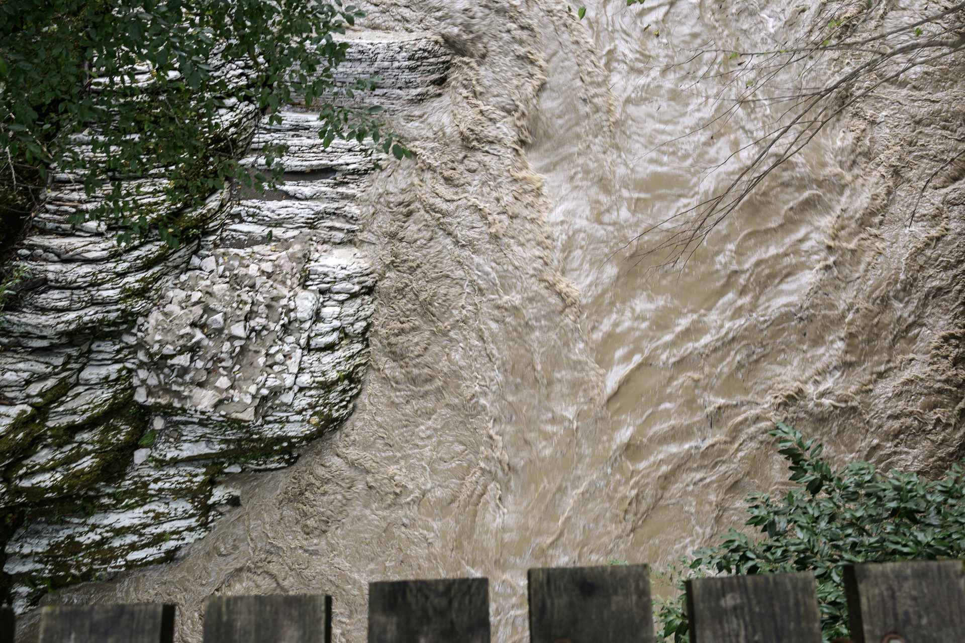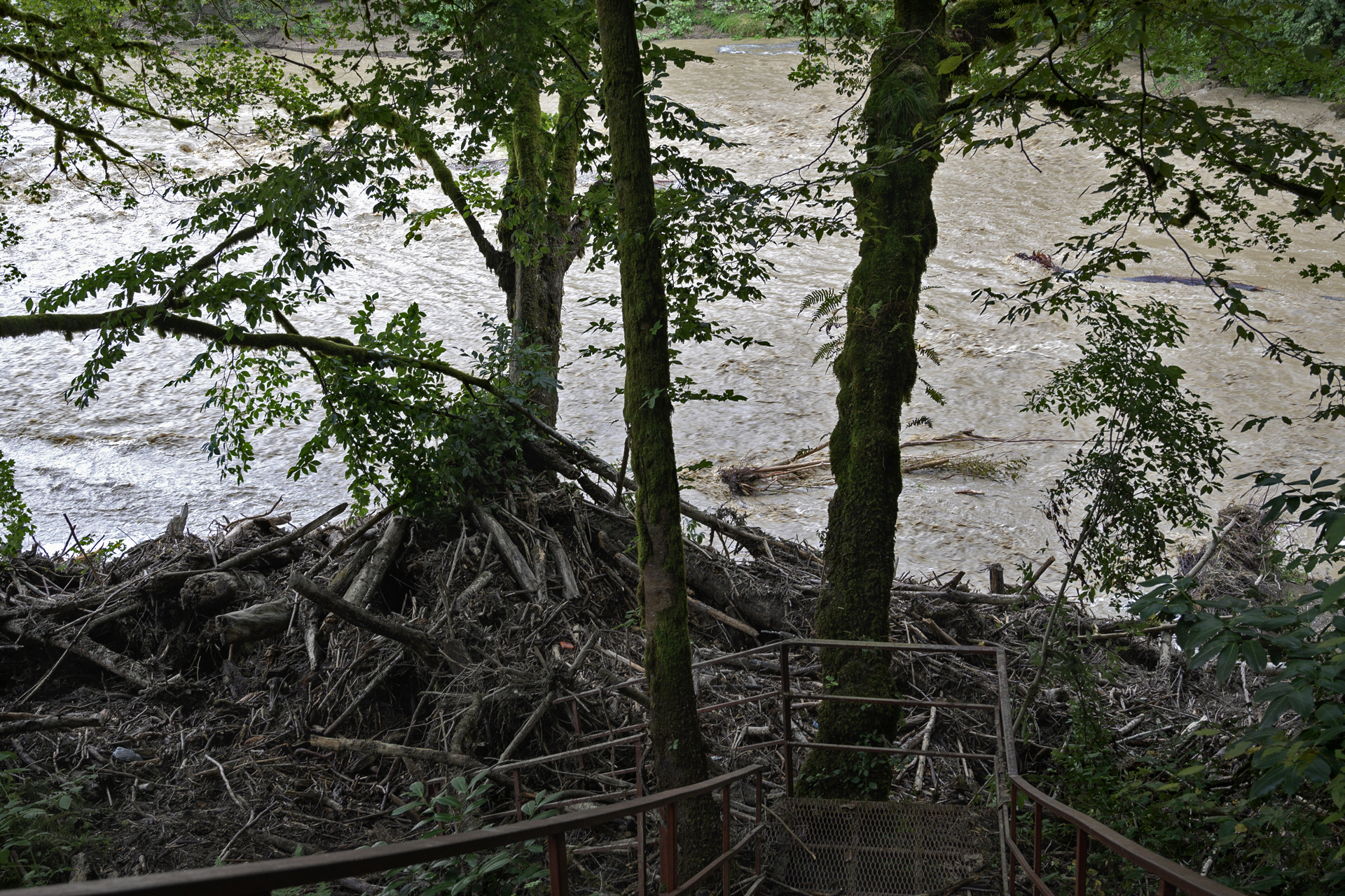 Из-за дождей выше в горах река поднялась, но обычно, как я потом понял по фотографиям других туристов, вода в реке чистая и прозрачная. В это место приходят и приезжают посидеть на берегу и поплавать. А сель сходил раньше и оставил после себя кучи всего того, что нашел на берегах | ||||